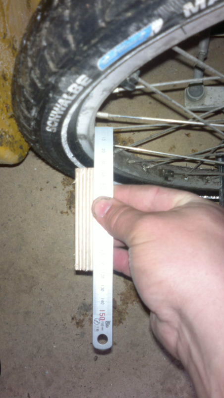 Mittaa moneen kertaan, niin saat varmemman tuloksen. Mieluimmin aina ensin edestä ja sitten eturenkaan takaa, niin välykset jäävät samaan suuntaan kuin ajossa.