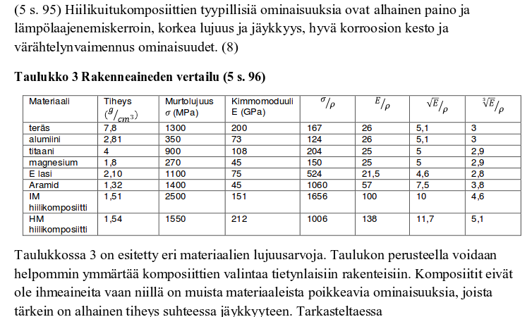 Esimerkiksi tuo 70 mm kertaa 120 mm on ympärysmitaltaan noin tupla 50 mm putkeen verrattuna. Saman painon saavuttaakseen pitäisi siis käyttää alle puolta 50 mm rakenteen seinämänvahvuudesta. 50 x 1 putki olisi hyvä, jos sitä saisi ja kykenisi luotettavasti hitsaamaan. Noin suuren poikkileikkauksen hiilikuiturakenne olisi paljon jäykempi ja paljon lujempi, mutta seinämää saisi olla vain puoli millimetriä.