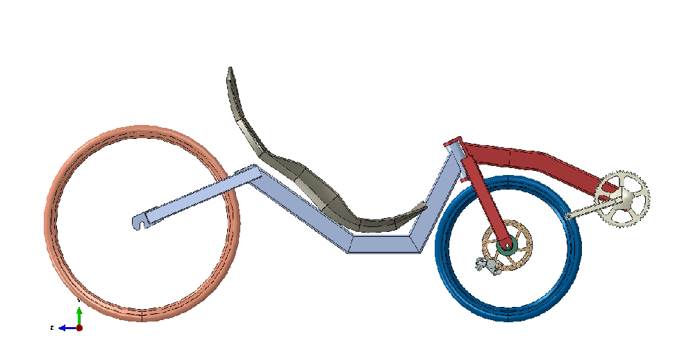 Nyte siinä olis osa eturunkoakin, tosin vielä puuttuu parit tuubit (täydentävät rakenteen kolmioksi). Tolla kombinaatiolla eturungon massa on 1.6 kg. Nivelestä ei vielä tarkempaa havaintoa ...eika parista muustakaan seikasta: ohjausgeometria, voimansiirto, jarrut yms ... eikä tuo haarukkaviritelmäkään varmaan ihan tuollasena konkretisoidu.