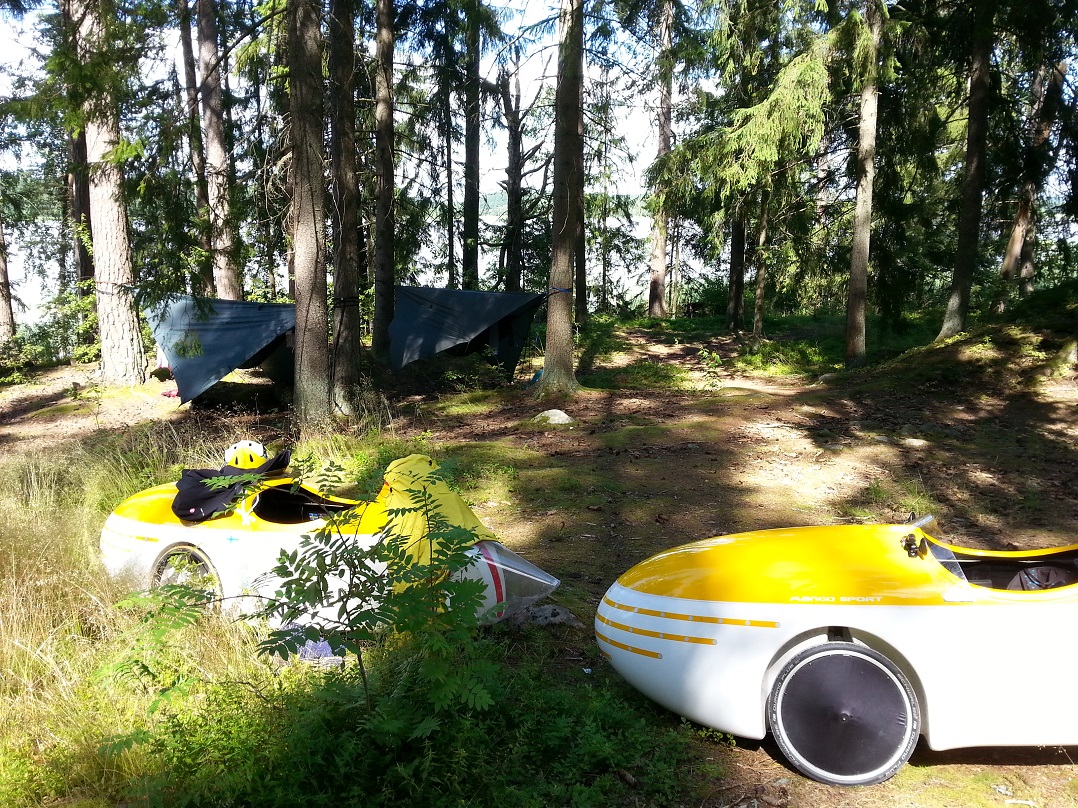 Paikkaa arvottiin kauan, hyvät riippumispaikat oli toimineet kenttäkäymälänä mutta löytyipä sopivakin. Joku perhe matkailuautoili 6 muksun voimin ja tenavat innostuneena pyöriskeli Mangojen ympärillä, johonkin Oulun ympäristöön puheenparren perusteella heidän kotipaikan sijoittaisin. Yhden tuulessa irrallaan pyörivän teltan pelastin oksanhankaan kiinni.