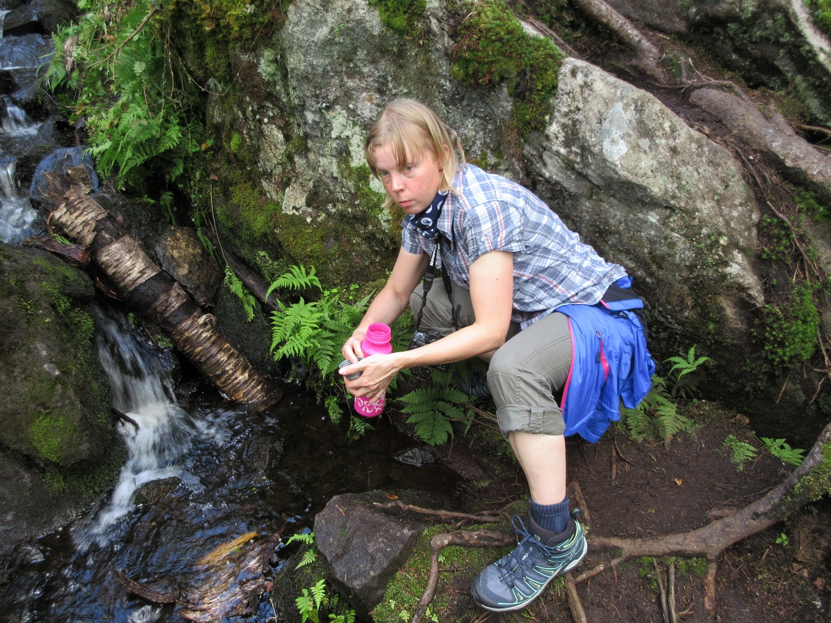 Onneksi huippu kerrallaan ihmiset väheni, sitä mukaa polku kapeni ja lopulta se oli ”oikean luontopolun” kaltainen. Huipuilta eteenpäin mennessä ei montaa ihmistä tullut vastaan. Löysin myös lempipaikkani, kuvassa oleva tarhapuro. Oikein hienoa kyllä, että ihmiset käyvät tällaisissa paikoissa sankoin joukoin mutta itse olen niin maalainen ja syrjässä tottunut retkeillemään, että vastaantulijalle vähintäänkin nyökkää. Tuolla huipulla nyt ei ketään viitsi morjenstaa mutta jos poluilla tulee yksi porukka tunnissa vastaan niin silloin. Ei vaan toimi täällä, ensimmäistä kertaa moiseen törmään.
