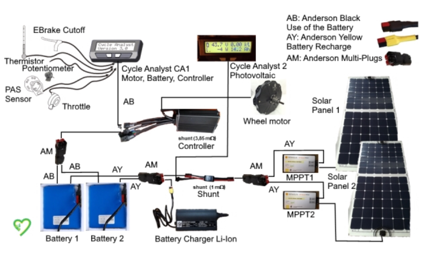 Tässä aurinkosysteemin ”esikuva”. Tällä Azubilla on matkattu Ranskan Lyonista Kiinan Kantoniin pelkällä lihas- ja aurinkoenergialla.