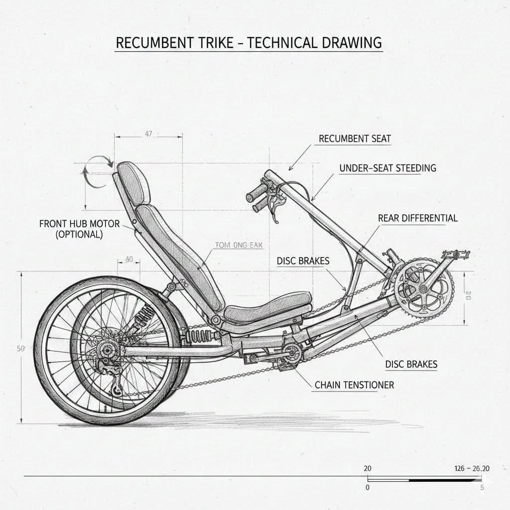 Nojapyöräilijä ehkä katsoo tätä kuvaa kuin pystypyöräilijä katsoo nojapyörää. Onhan siinä suunnilleen samoja osia, mutta väärissä paikoissa.