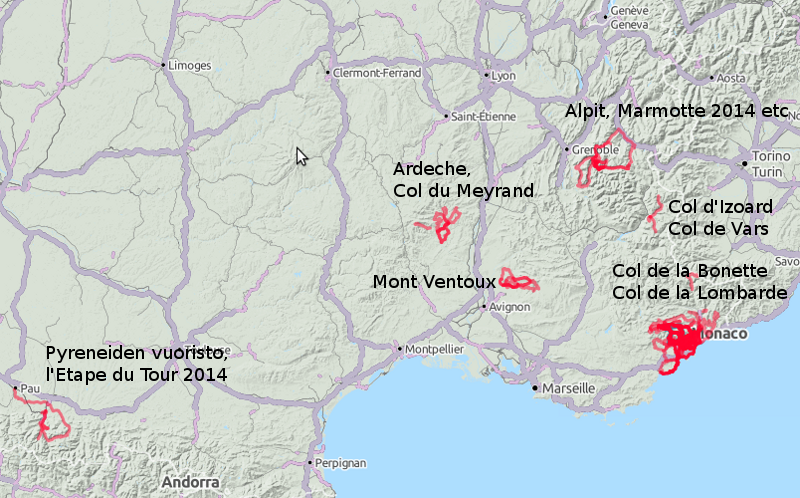 Tänään saalistettu ensimmäinen "iso" Col trikella. Kaupan päällä ajoin myös toisen pikkucolin, niin sain vähän kilometrejäkin kasaan, 52 km kaikkiaan. Otin videolle laskun Col de Meyrandilta, mutta se taitaa tulla julkiseksi editointien jälkeen vasta huomenna tai ylihuomenna.