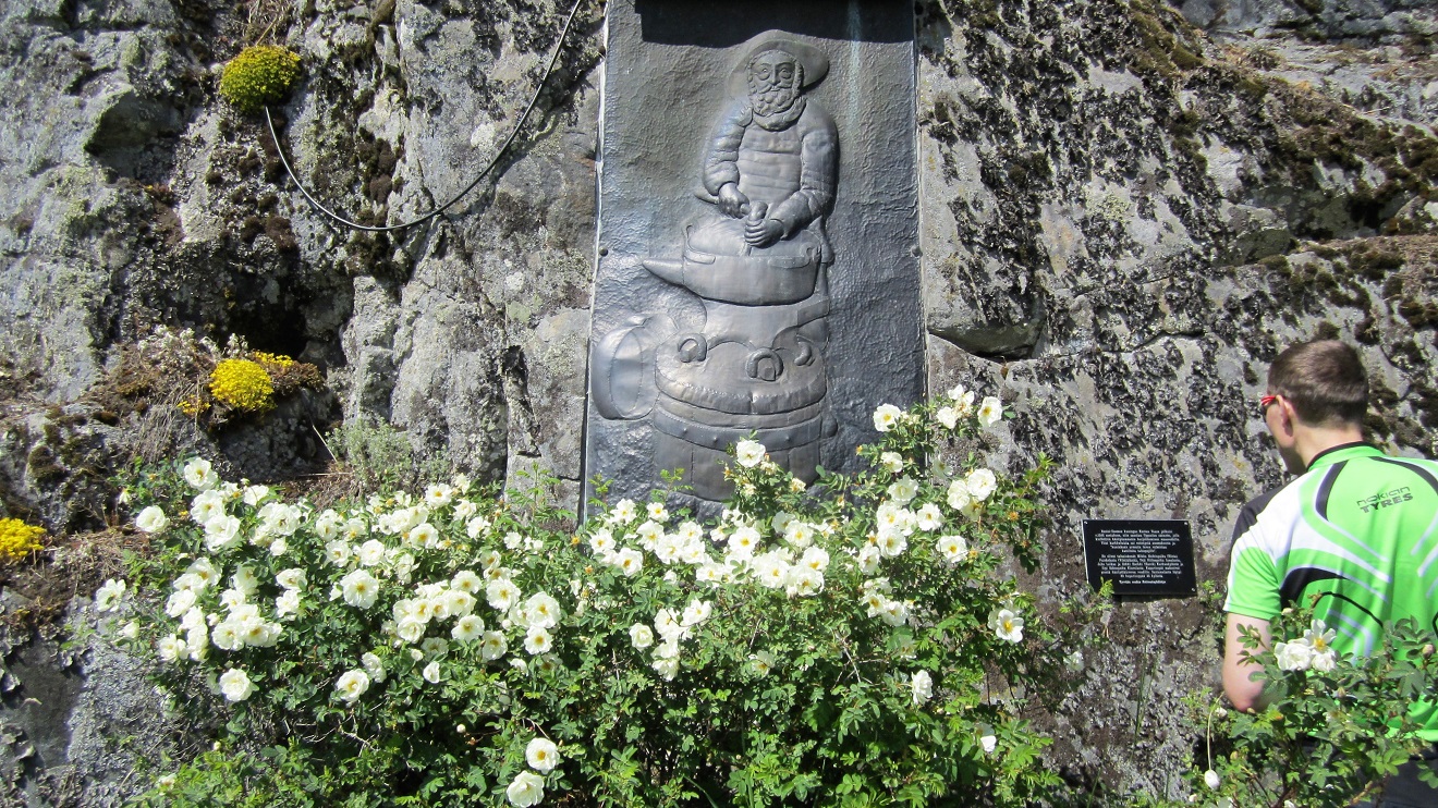 Ellivuoren laskettelurinteen luona tosiaan pysähdettiin, ja huomio kiinnittyi maisemien ihailun jälkeen tuohon kalliossa olleeseen tauluun.
