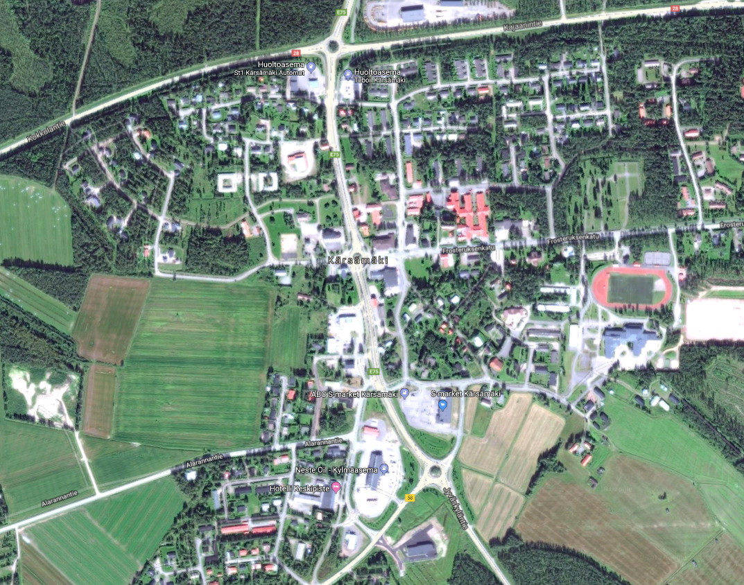 Kurkin vähän kartoista noita ympyröitä. Kärsämäen kolme ympyrää ovat kaikki liikenteellisistä syistä. Imatran ympyröitä on tosiaan tehty myös ihan ympyröiden tekemisen ilosta, kuten Lammashaankadun pään ympyrä (kuvassa alhaalla vasemmalla).