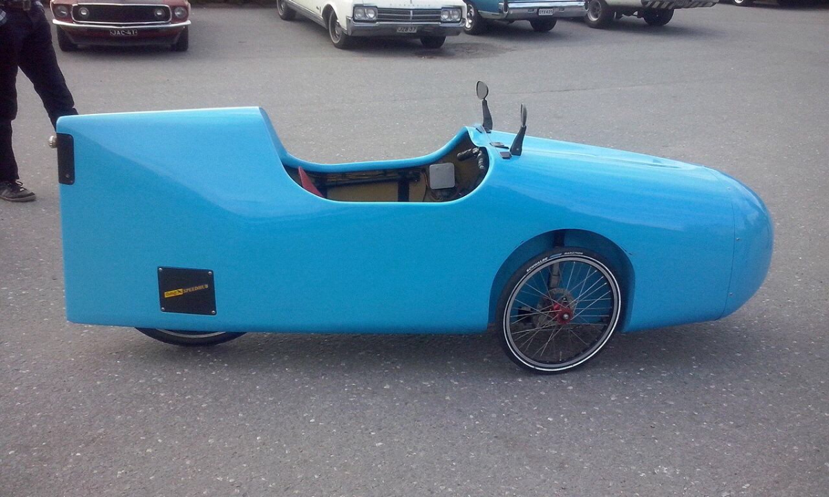 PW on oikeassa, ensimmäinen kuituvehje modifioitiin ja väristä tuli keltainen, Sitten mopopojat muotoili sen uuteen malliin ja tein uuden korin. Värikin taas vaihtui siniseen. Talvella laitoin sähköt takamoottorilla ja nyt sitten vaan ajellaan.Kokonaiskilometrit tällä päivämäärällä n. 23000 km. Härskin kanssa jutellessa taisin mainitakin, että kiinnostais tehdä LeMans`tyylinen kinneri isoilla pyörillä. Siinä on jonkun verran pähkäilyä esim. pyöränripustuksissa.Isoilla pyörillä eroaa triken rakenteesta. Ranskalaisilla foorumeilla on kyllä keskustelua, jos Googlella saa vähän selvää.
