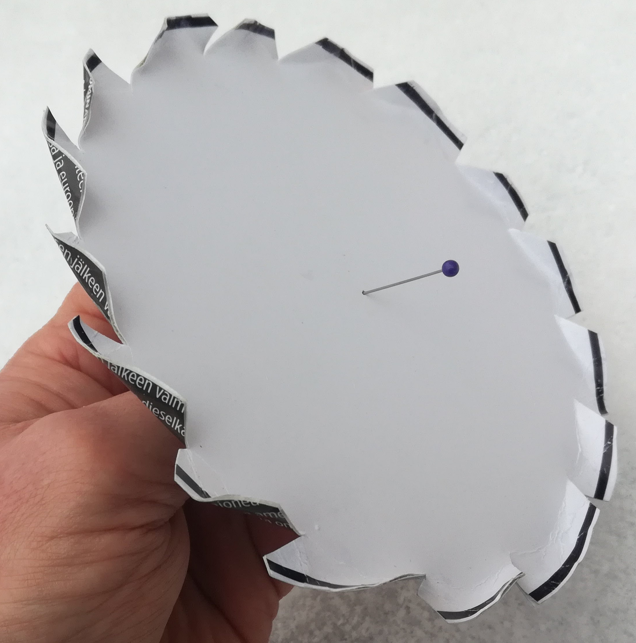 Tein pahvista turbiinipyöräkokeilun ja toimihan se. Hienosti pyöri. :D