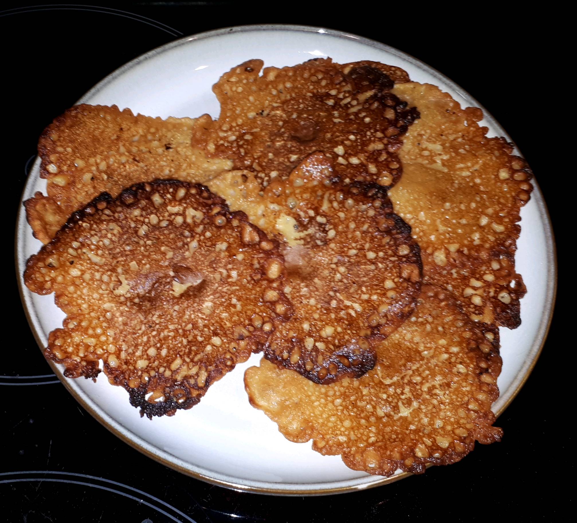 Ei se kyllä yhtään kananmunalle maistu, mutta ei haittaa, kun tulee todella hyvän makuisia suolaisia lättyjä! ![]()