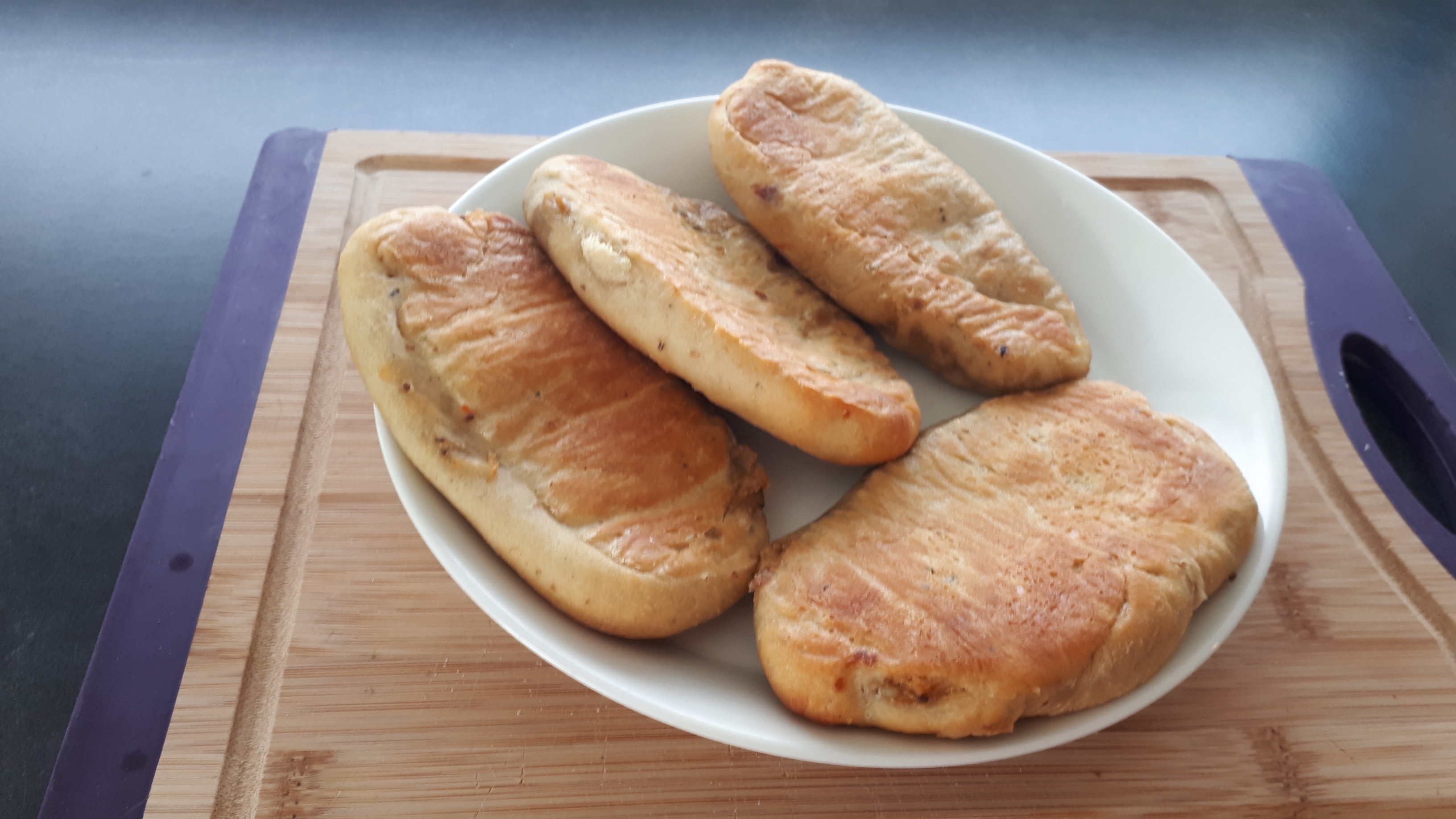 Taikinaa on täytteeseen nähden puolet liikaa, mutta pienempää taikinaa on vaikea tehdä. Loput mitä jää yli, voi pakastaa tai leipoa vaikka sämpylöiksi.