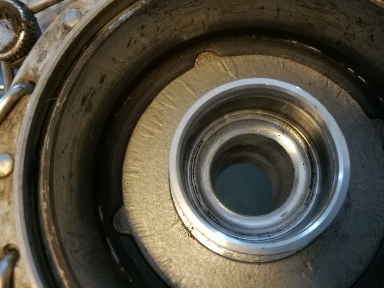 Kun siinä on kaksi uraa, sisempi leveä (on molemmissa laakeripesissä) ja ulommainen, ehkä pari milliä leveä,. Tuota ulompaa ihmettelen :? siinä ei rasva pysy kun laakerin painaa paikalleen. Tuon välissä olevan terävän harjanteen vois luulla ottavan laakerin suojapeltiin :?
