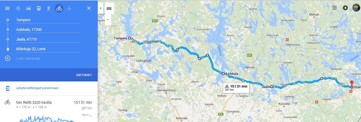 Tampere - Sahalahti - Luopioinen - Padasjoki - Asikkala - Jaala - Lemi