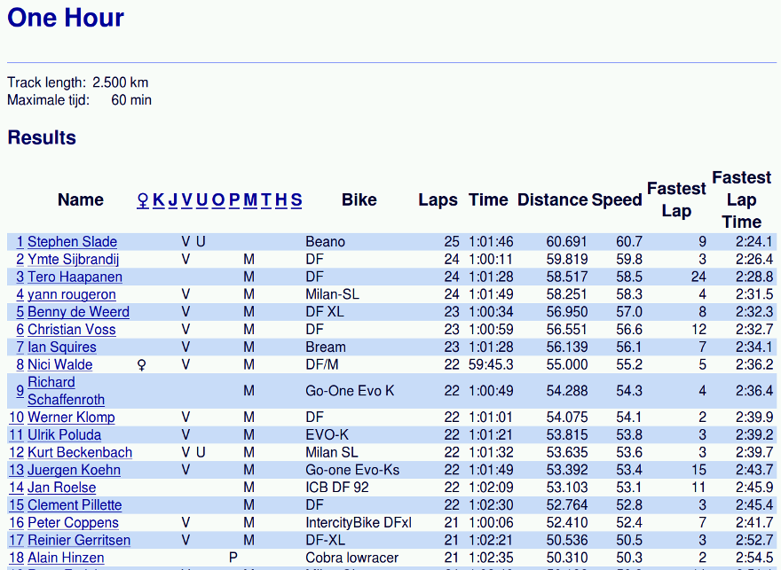 6h: https://wedstrijden.ligfiets.net/agenda/race.php?id=551