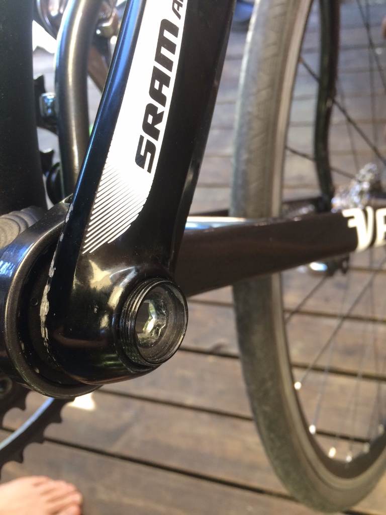 Srammin ihmeellinen kammen kiinnitys. Voisi luulla että tuo "ulosvetoaputulppa" myös varmistaisi kiinnityspultin paikallensa. Sitä se ei tee, jos ei sitä käännä väärinpäin... Viime kesänä tippui kerran kampi tielle TiCalla hurjastellessa, siitä jälkiä muistona kammessa. Onneksi oli monitoimikalussa 8mm kuusiokolo, niin pääsi kotiin kun kiinnitti kammen aina uusiksi jokusen kilsan päästä. Voisi joskus lyhentää tuon "ulosvetoaputulpan" Dremelillä...