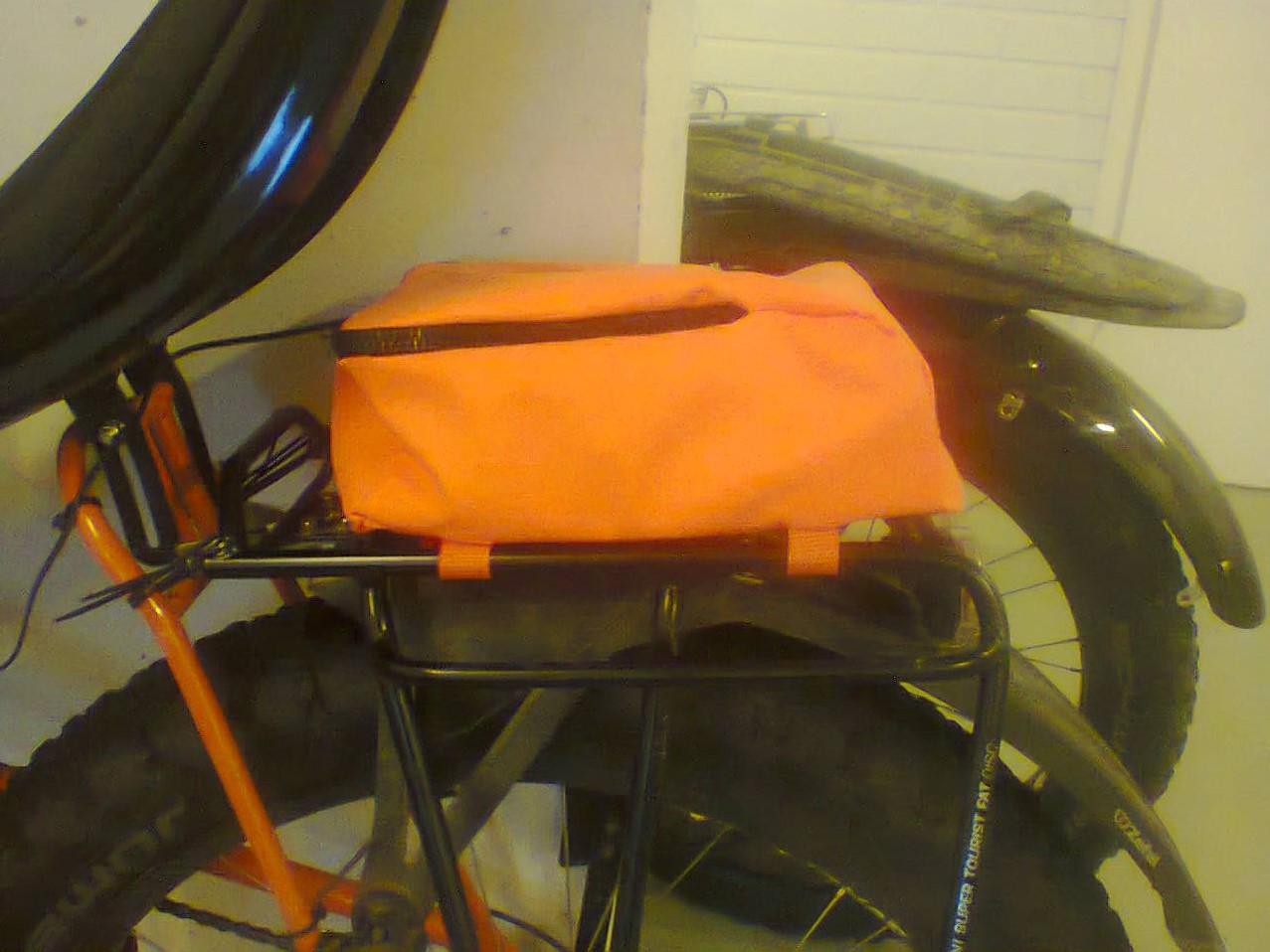 Tänään surautin koneella tarvikelaukun läskin tarakalle. Toimiva, vaikkei siistein mahdollinen (ainakaan sisältä, mut kuka nyt sinne katsoo...paitsi mä :mrgreen: ). Laukussa tuplapohja jossa sisällä solumuoviläpyskä, muuten tämän tarkoitus pysyä muodossaan ihan vaan sillä et sisälle tungettu kaikkea tarpeellista pikkusälää ja ajovalojen akut.