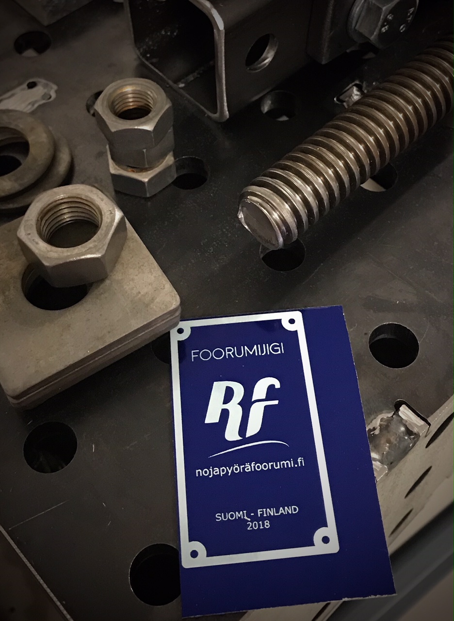 Vilijami kirjoitti:rosteri kirjoitti:En vielä myönnä aloittaneeni pyörän rakennusta, mutta tehdään nyt ainakin hyvä jigi. Tästä tulee ns. "foorumijigi", eli lähtekööt sitten Suomea kiertämään loppuelämäksi.