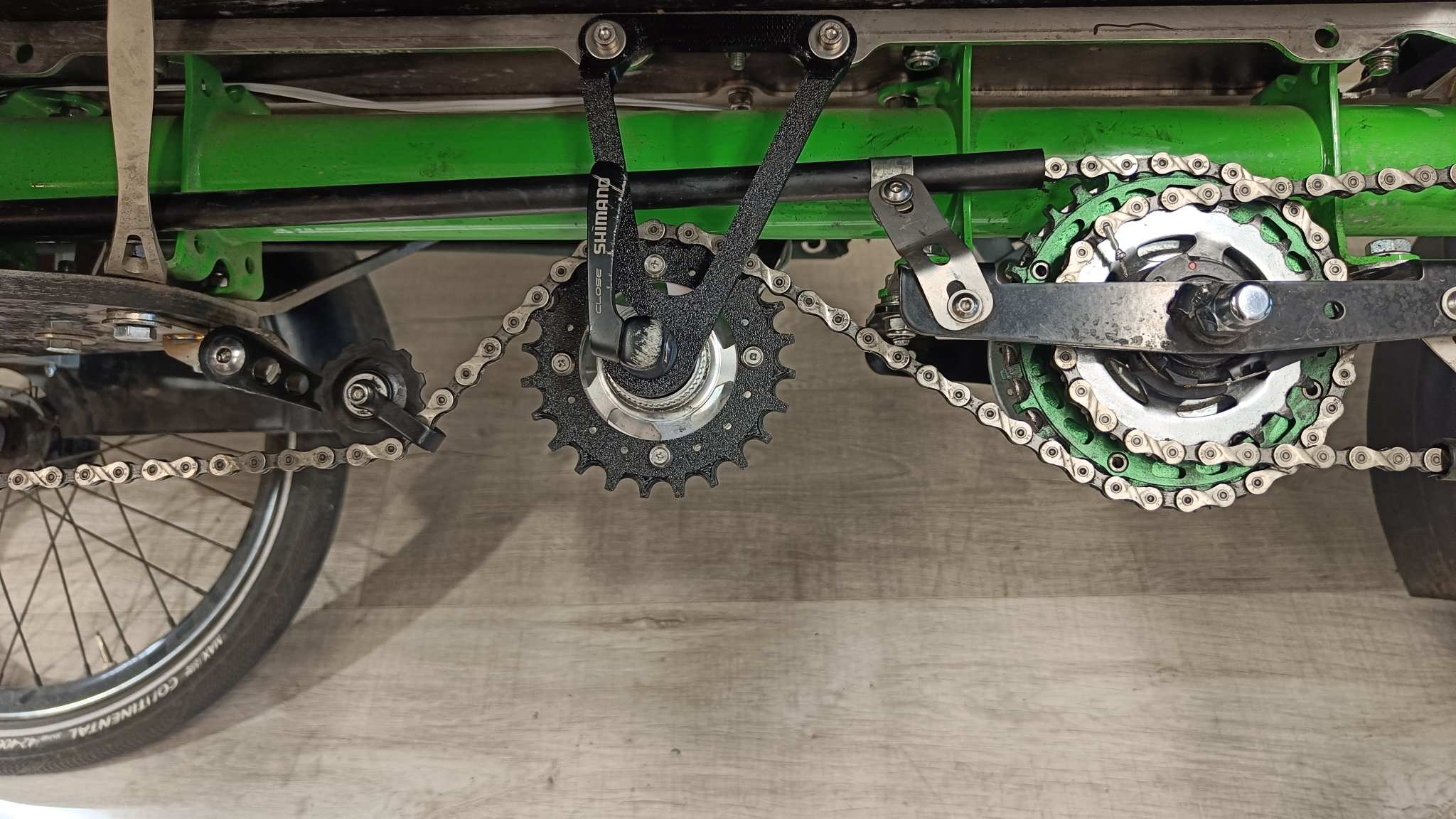 Tärinä ei ole niin voimakasta, kun momentti tulee taka-akselin suunnasta, kiristyy generaattorin rattaalle tuleva ketju enemmän ja ottaa paremman kontaktin rattaalla. Toisin päin, eteen ajaessa ketju tulee jäykältä rattaalta generaattorille, joten se ei ehdi reagoida vääntömomenttivaihteluihin.