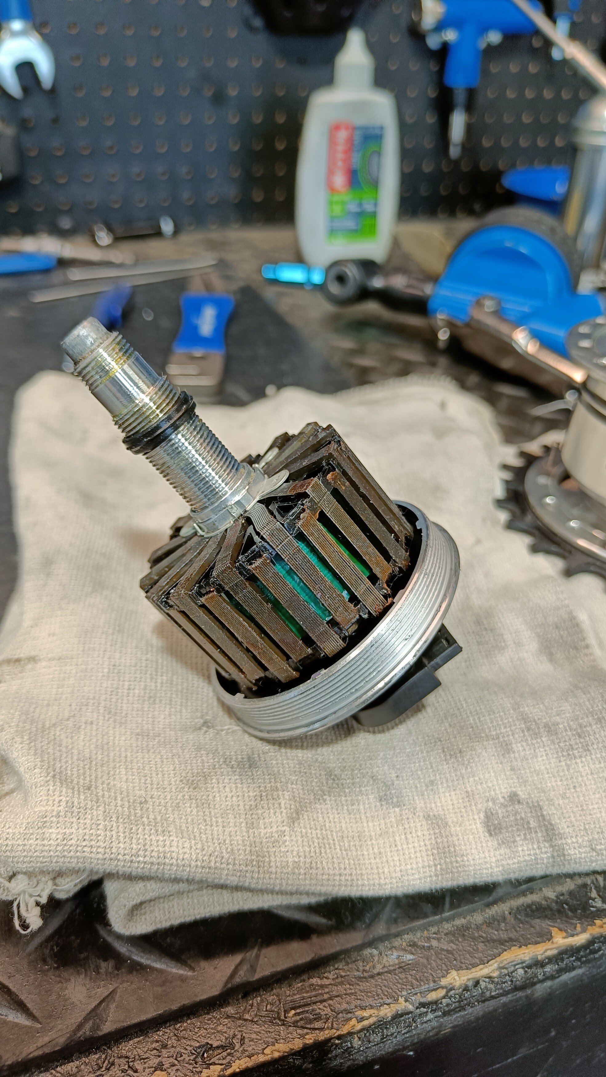 Tärinä johtuu siitä, että tuollaisen pelkän navan hitausmomentti on vain pieni murto-osa pyörän kiekon keskelle kiinnitettyyn nähden. Käämitys näyttää olevan täysin poikittainen, eli ei ole yhtään tingitty tuotosta vääntövärähtelyn minimoimiseksi.