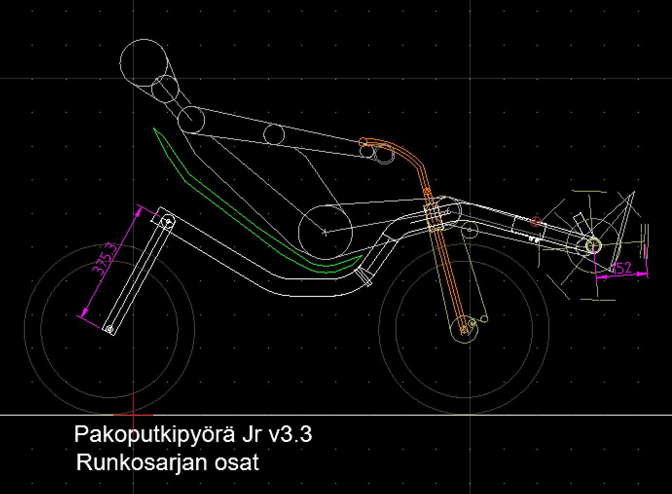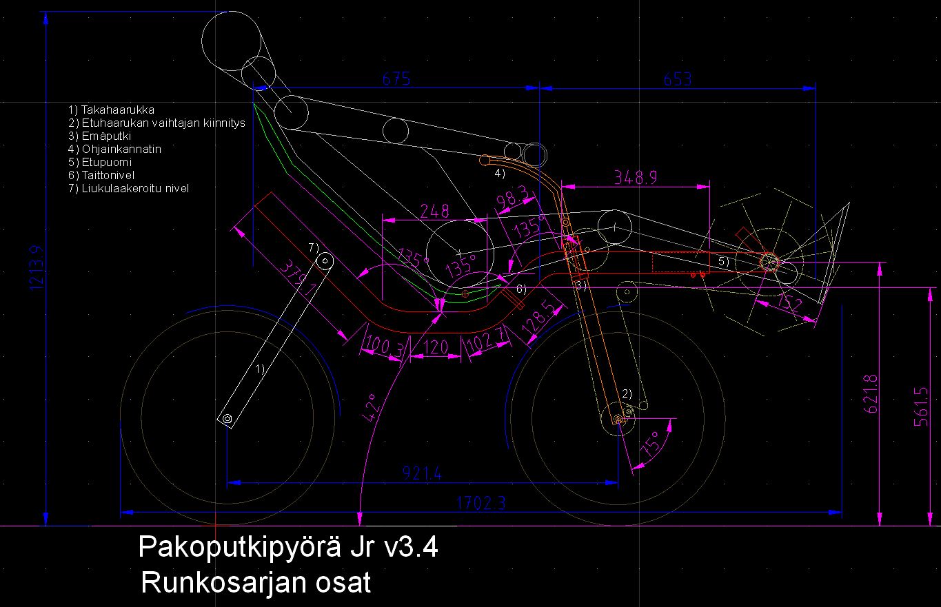 Jouduin pidentämään runkoa, koska taivutusfirma sanoi, että mutkien välissä pitää olla vähintään 120 mm suoraa. Nyt ei yllä jalat sitten polkimille. ![]()