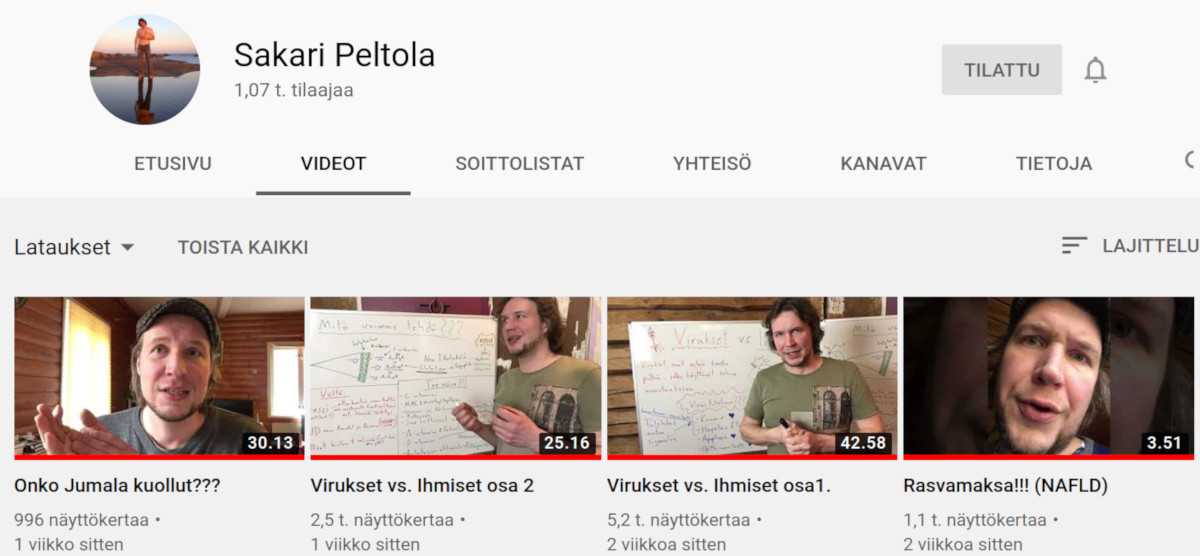 Hänellä on muitakin, hyvin argumentoituja, videoita ajankohtaisista aiheista, kuten koronaviruksesta.