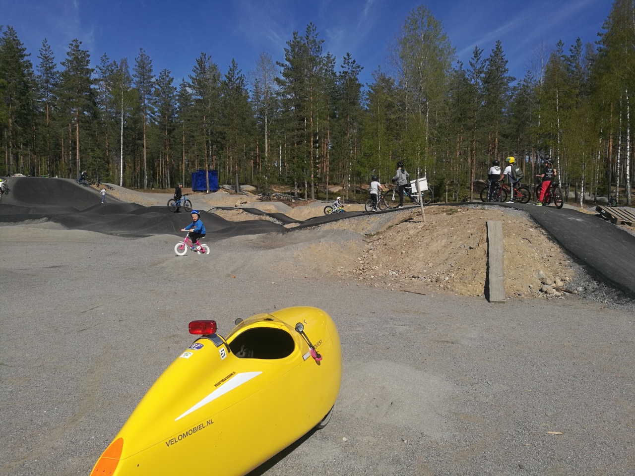 Karhumäen pumptrack, talkoilla pääasiassa tehneet radan - viime syksynä kaupunki kustans asfalttia osalle aluetta. Nytkin oli penskoja varmaan parikymmentä jos ei ylikin, vaikkei ollu mitkään viralliset harkat. Pitävät maastopyöräkoulua lapsille, vapaaehtoisvoimin.
