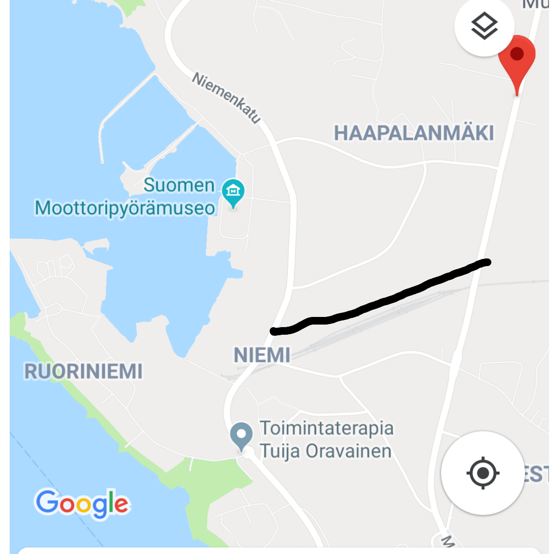 Ja googlemapsissa on näemmä karttavirhe niin se ei osaa reitittää.