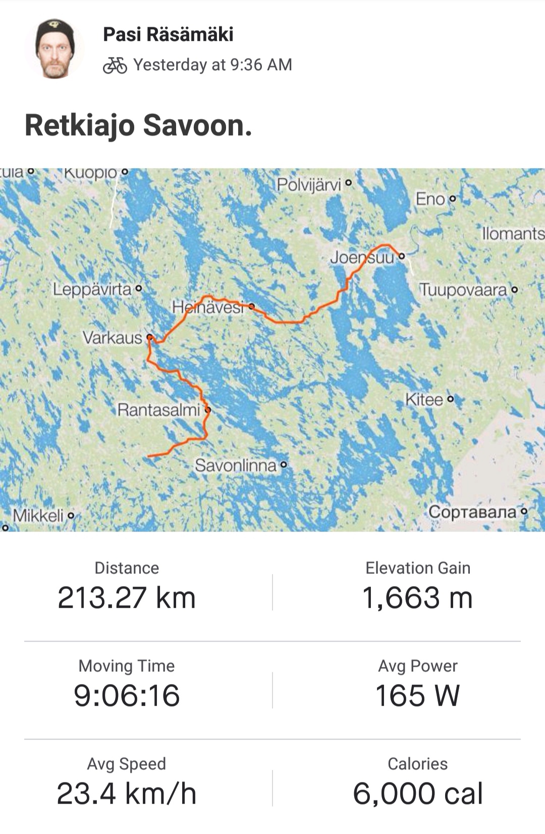 Ihan kunnioitettava pieti yhden päivän ajeluksi. Oliko maasto mäkistä, oliko pyörässä ongelmia?