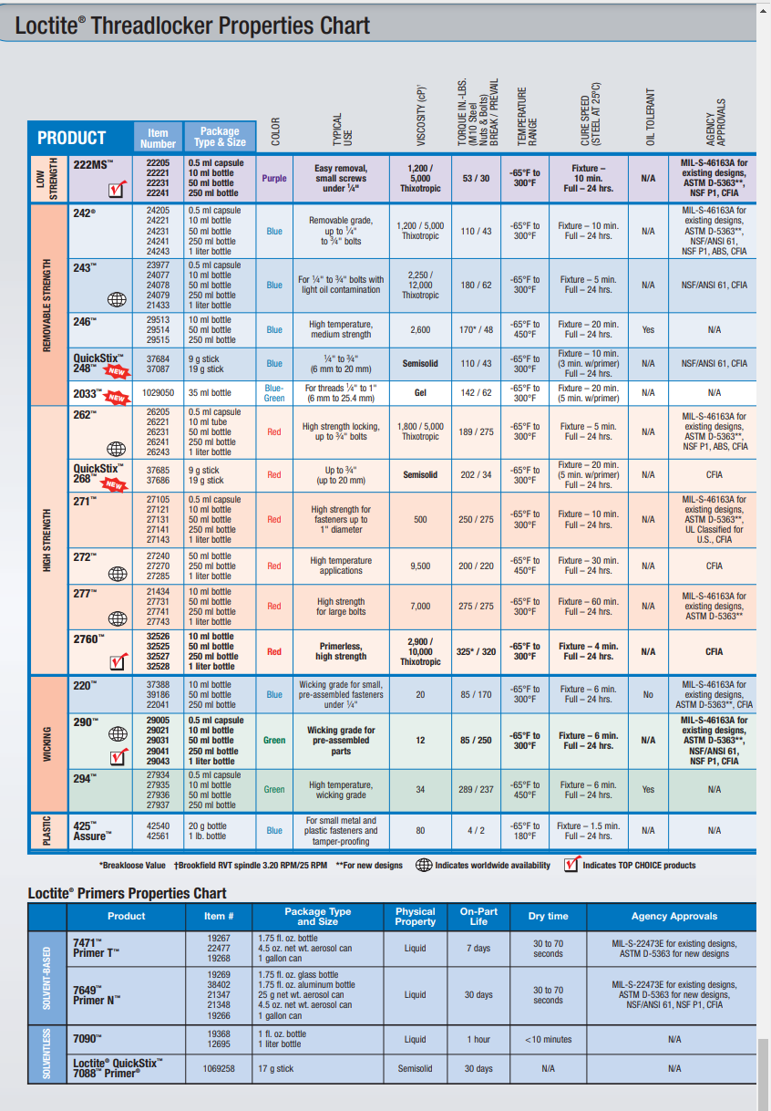 Tuo Bilteman lukite on sekin tätä matalimman lukitusvoiman kamaa, joskin hieman lujempaa. Tuossa taulukossa on annettu lukitteen lujuudet LBS IN yksiköissä M10 pultille ja mutterille. Paunatuumista saa Newtonmetrejä (Nm) jakamalla lukeman vähän alle kymmenellä, eli tuo Bilteman lukite vastaa Loctiten matalimman lukitusluokan liimaa.