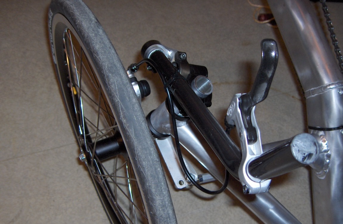 Taas on takana yksi testilenkki. Laitoin runsaat 5 baria (aikaisemmin 4) painetta renkaisiin ja siirsin ohjausvivut uuteen asentoon (nyt ovat lyhyemmät, mutta toisaalta "säätöosat" ovat ohjausakselin etupuolella), kts. kuva.