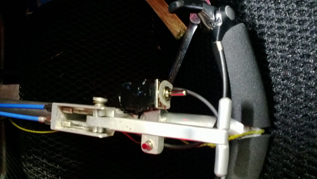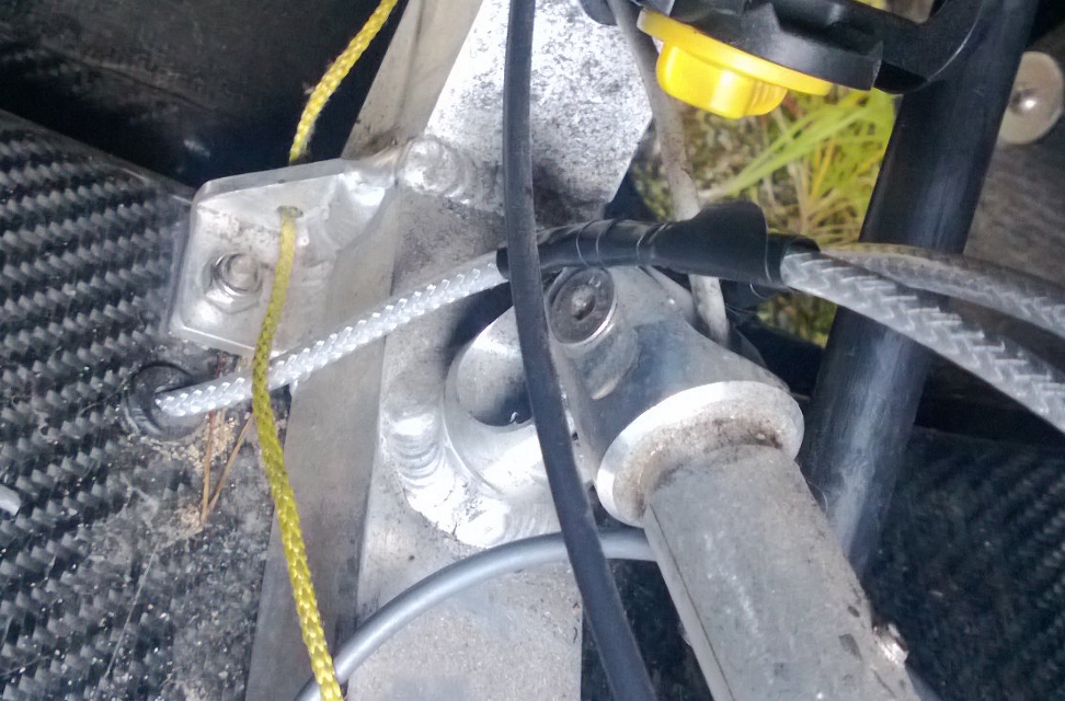 kuvassa näkyy jarruvaijerit ja ohjaustangon alapään nivel