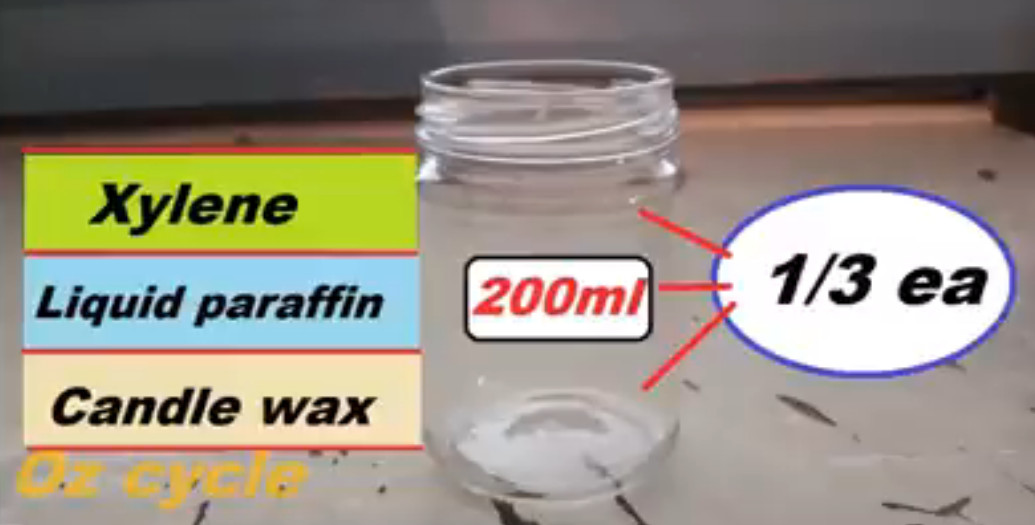 Tässä video, jossa tehdään ketjunvoiteluaine sulattamalla yhteen samassa suhteessa kynttilöitä parafiiniöljyä ja xyleeniä.