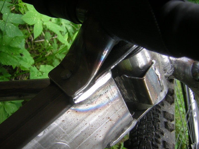 20 x 160 pultti ilman mutteriakin painaa 470 grammaa, etkä saa mitään lisäarvoa siitä, että pultin voi kiristää. Minä laittaisin vain putken, jonka työntäisin läpi rei'istä. Yläpuolelle sivulta sokka pitämään putki ylhäällä ja alapuolelle hitsattu levy putken päähän (yhteensä noin 100 g). Kiinnityksen voi tehdä myös laittamalla M5 ruuvin alalevyn läpi alempaan lattaan. Ehdotan siis samaa rakennetta, jota käytettiin kuparisen Airbikessä.