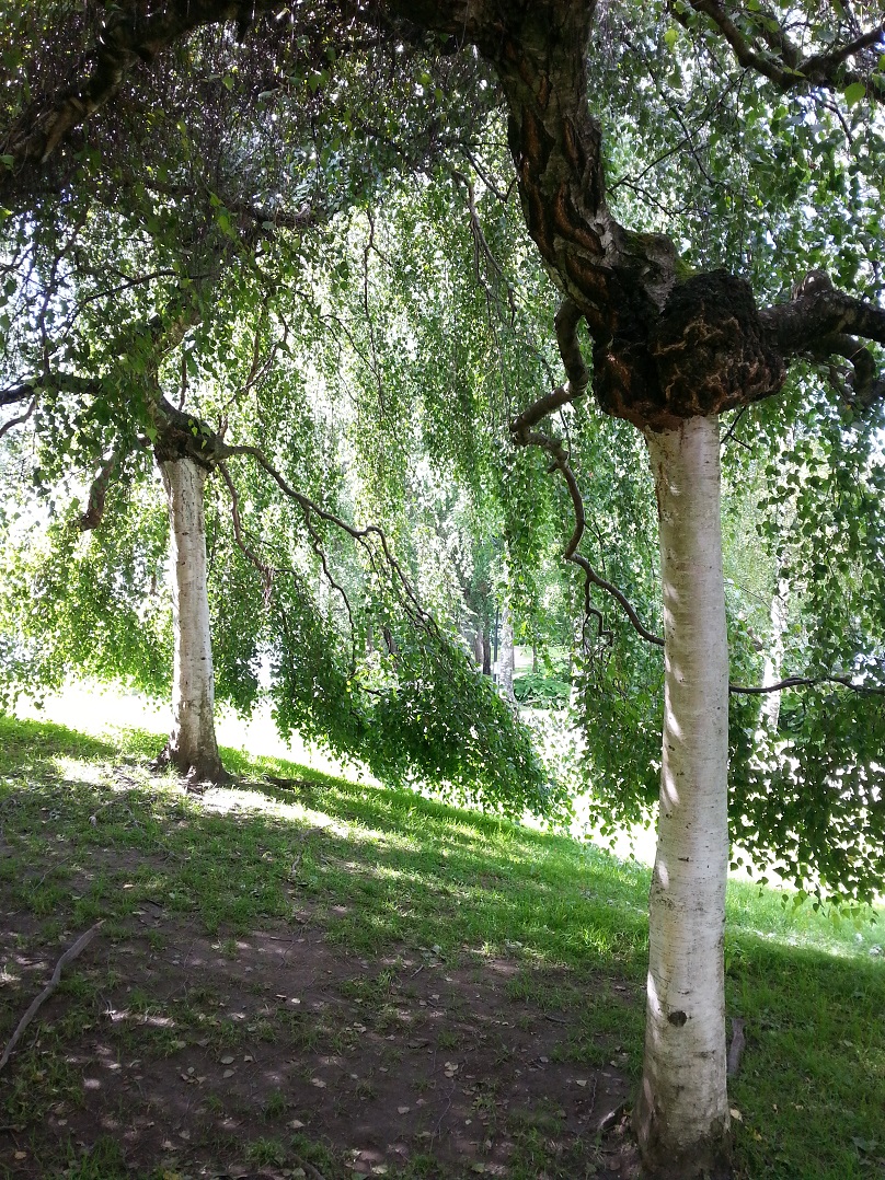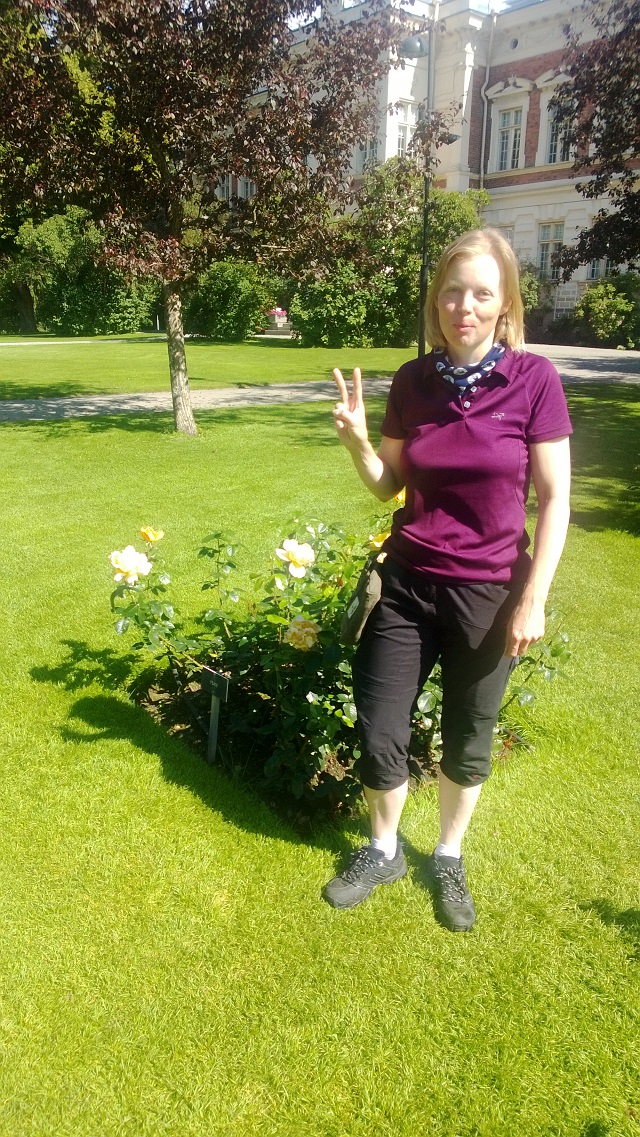Vieressä on vanha kartanopuisto jonka pihaan on tehty ruusutarha ja niitä ruusuja käytiin katsomassa, lajeja oli näkyvissä ainakin 50 ja varmaan vieläkin enemmän. pari olisin ruusuksi tunnistanut :oops: Puupuistossa käppäiltiin myös, teitä/polkuja oli nätisti rantoja myöden. pari onttoa puuta oli missä oli pultti laitettu läpi, kai pitämään puu läjässä?
