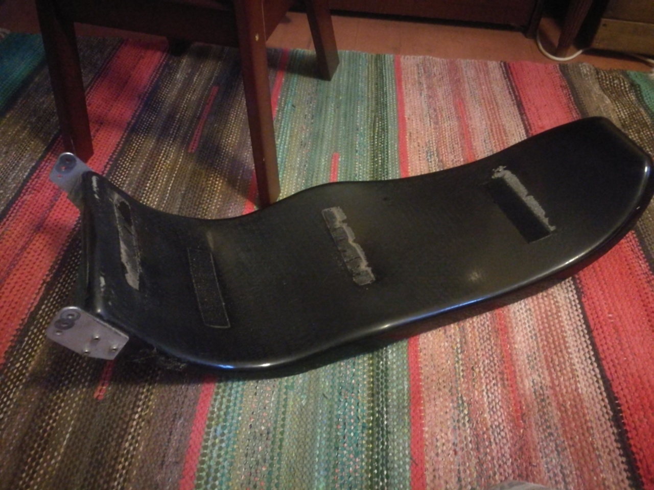 Kun pyörä on remontissa, vois yrittää tehdä soihen samalla paremman penkin. Alkuperänen penkkihän on muuten miulle sopiva mutt mielestäni istuin osa on liian leveä edestä - reidet ottaa polkiessa penkkiin. Tekis siis mieli muotoilla uus, samalla joutus miettimään penkin kiinnityksen ainakin edestä kokonaan uusiks. Questin penkinkiinnike on aika järee, vaikkei se aliinisena varmaan kauheesti painakaan.