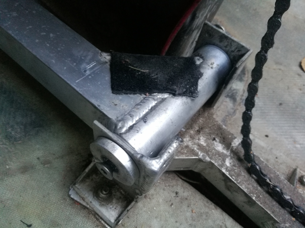Heilurin kiinnittävän akselin päässä (kuvassa yläpäässä) olevan prikan alla oleva rajebbe on vielä epäselvä. Mihin prikan kiinnittävä ruuvi kierretään. Onko akseliputkeen hitsattu mutteri sisälle, vai meneekö tuo ruuvi läpi asti sinne hitsattuun laippalevyyn.
