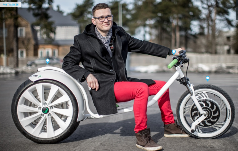 Virolaisilla on lennokkaita pyöräkehitelmiä: Harry Potter-henkinen luutapyörä ja sähkö-noja-MBB-moottoripyörä, vai mikä olisi, polkimiahan ei ole, vaan vain jalkatapit.