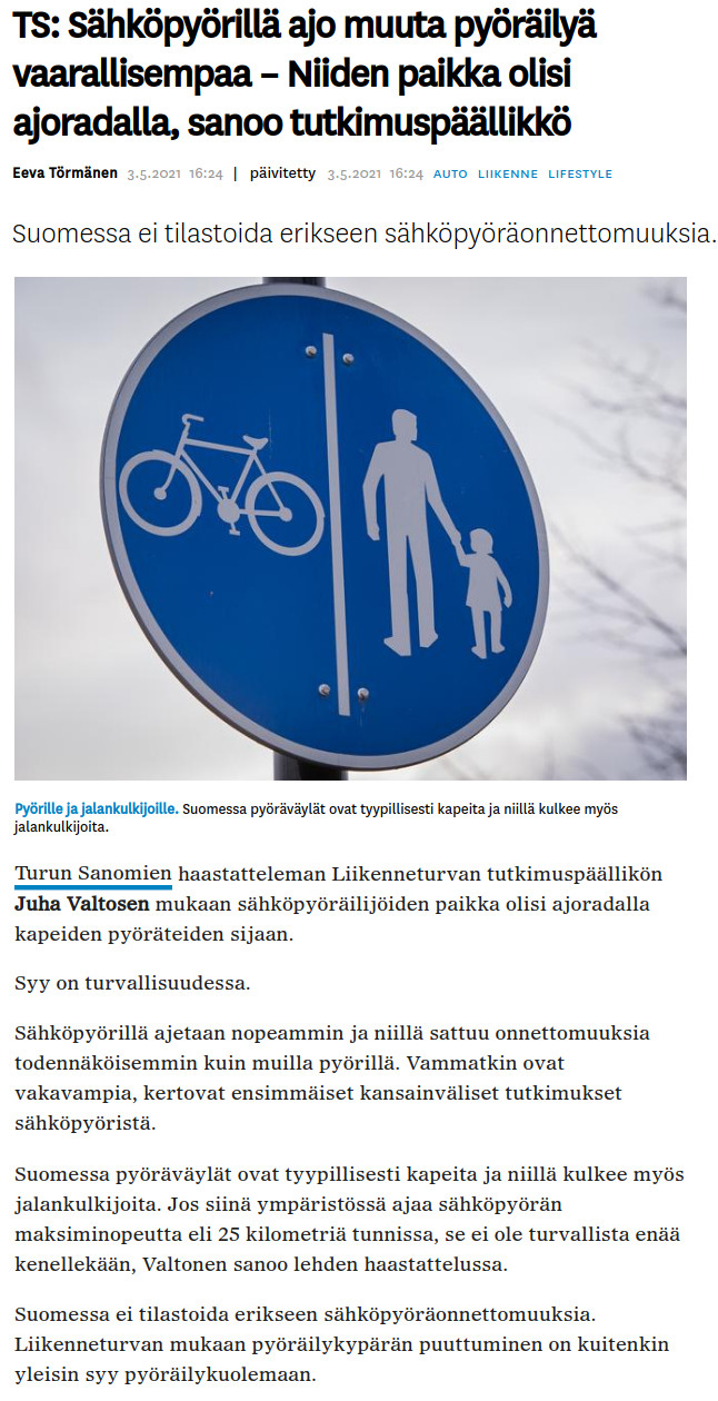 Tässä ensin sähköpyörien liian suuresta nopeudesta kelveille