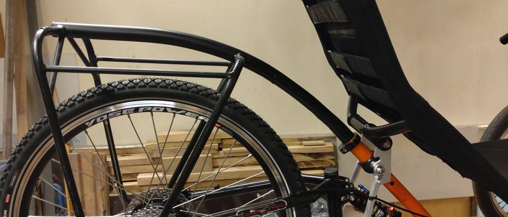 ASAsta päätyi taas tulostimeen tällainen. Saa tarakkalaukun tuonne päälle tai jonkun tason. Pyörän mukana tullut oli tehty vesivanerin paloista. Siitä sai kyllä mitat kätevästi. Takavalolle tulossa myös pohjalevy, jossa punaista heijastinnauhaa ja moottoripyörän takaledilista (12 VDC vilkut, ajo- ja jarruvalo).