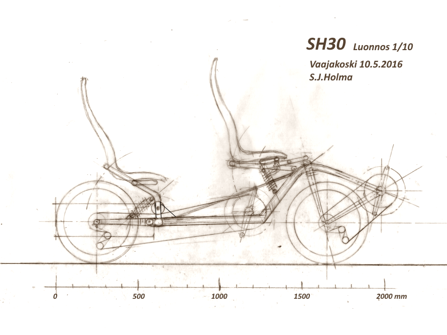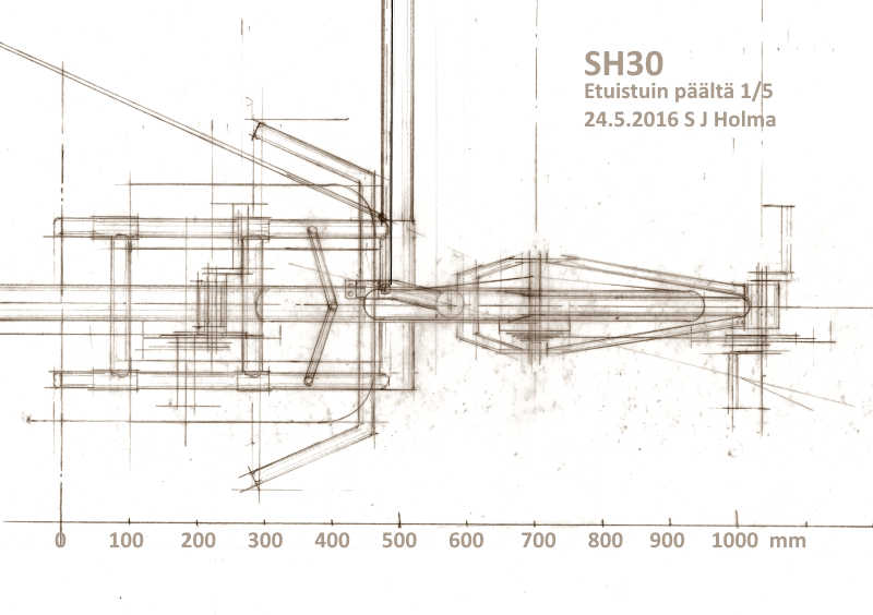 Olen kehitellyt ja piirrellyt SH30:n yksityiskohtia. Jottei homma menisi liian monimutkaiseksi ja painavaksi, ajattelin jättää pois etuistuinten jousituksen.
