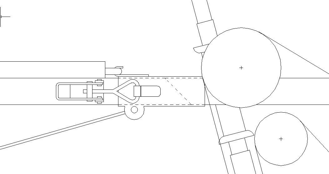 Toimisiko tuollainen salpakiinnitys rungossa? Rungon yläpuolelle hitsataan stopparipalikka, jota vasten alapuolen salpa kiristää. Runkoputki on 40 x 40 ja päällyputki 45 x 45 x 2. Hieman jää välystä, mutta osaisiko tuo salpa kiristää sen pois?