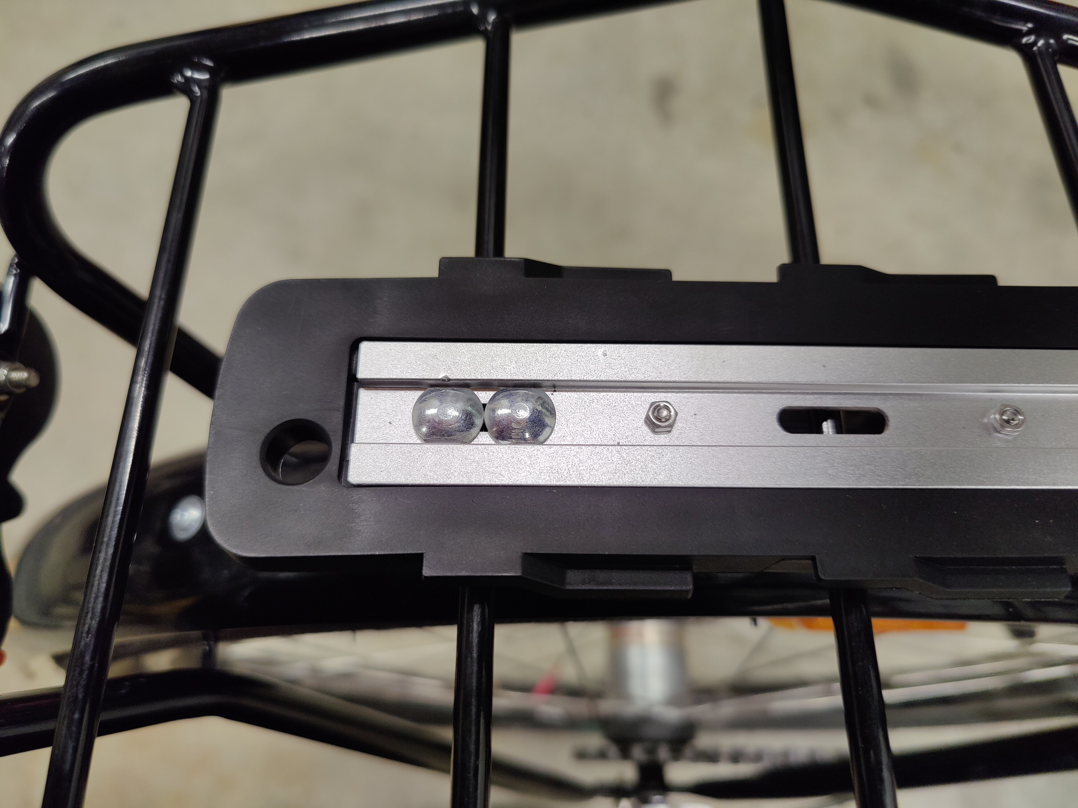 Vävypoika tuli pukkaamaan liittimet paikoilleen ja sitten vielä akkutelineen kiinnitys tarakkaan. Pallokantapulteilla ja vaijerilukon valuosalla tuli jämäkkä kiinnitys.