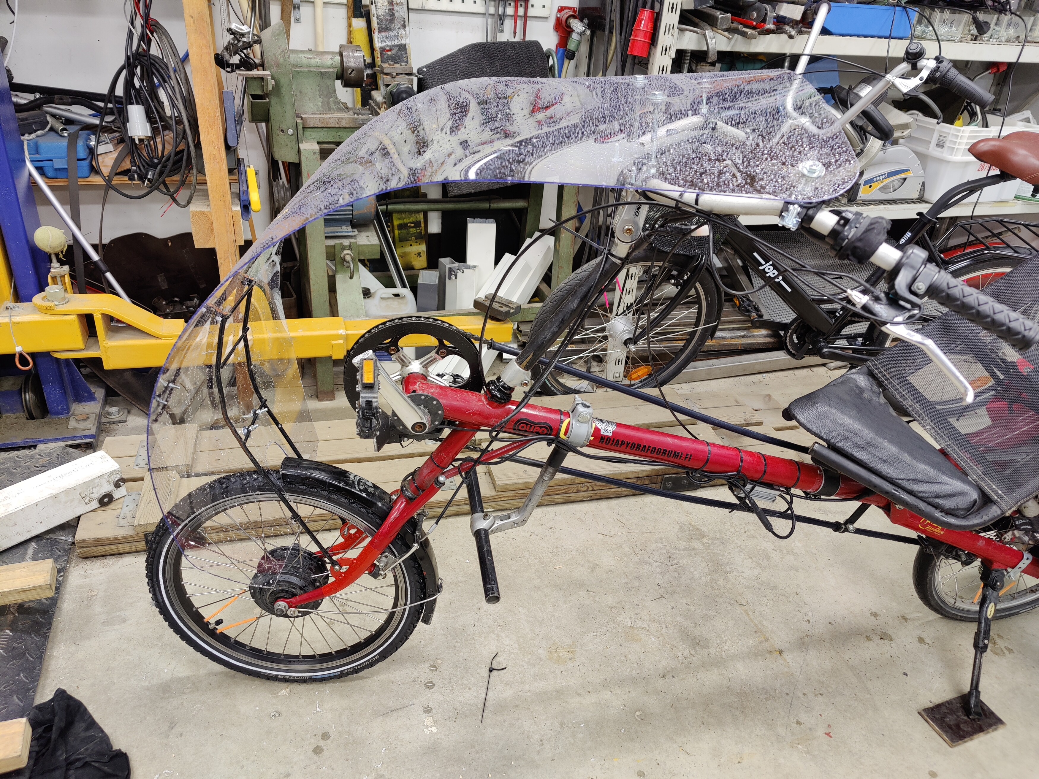 Jotain viimasuojaa siihen haaveilin, mutta ei tuollaista 3D muotoiltua, vaan levystä taivutettu. Se on vielä epäselvää tehdäänkö taivutus pitkittäin vai poikittain. Materiaalikin on harkinnassa vikuprop vai polykarbonaatti? Onko ehdotuksia?