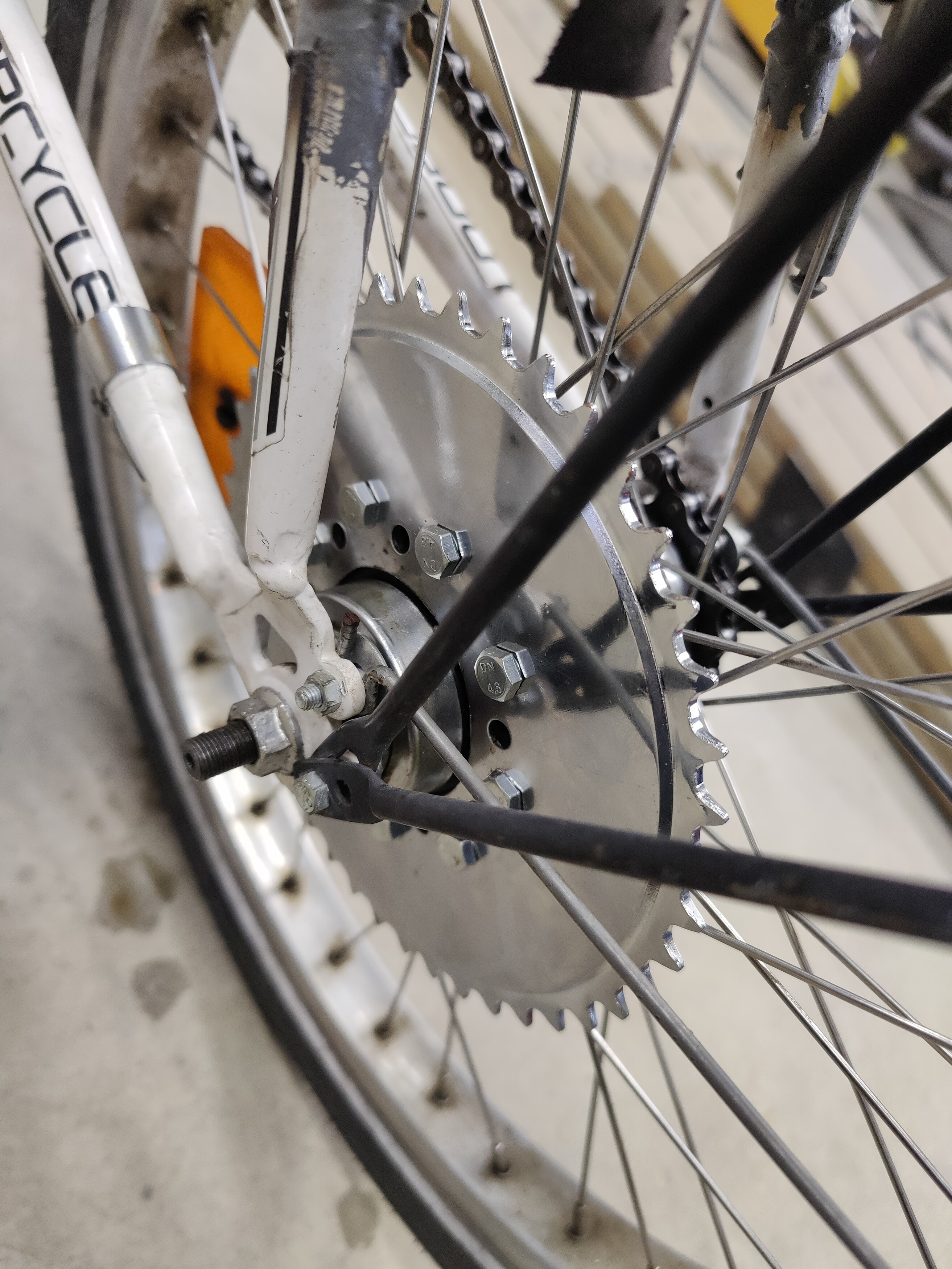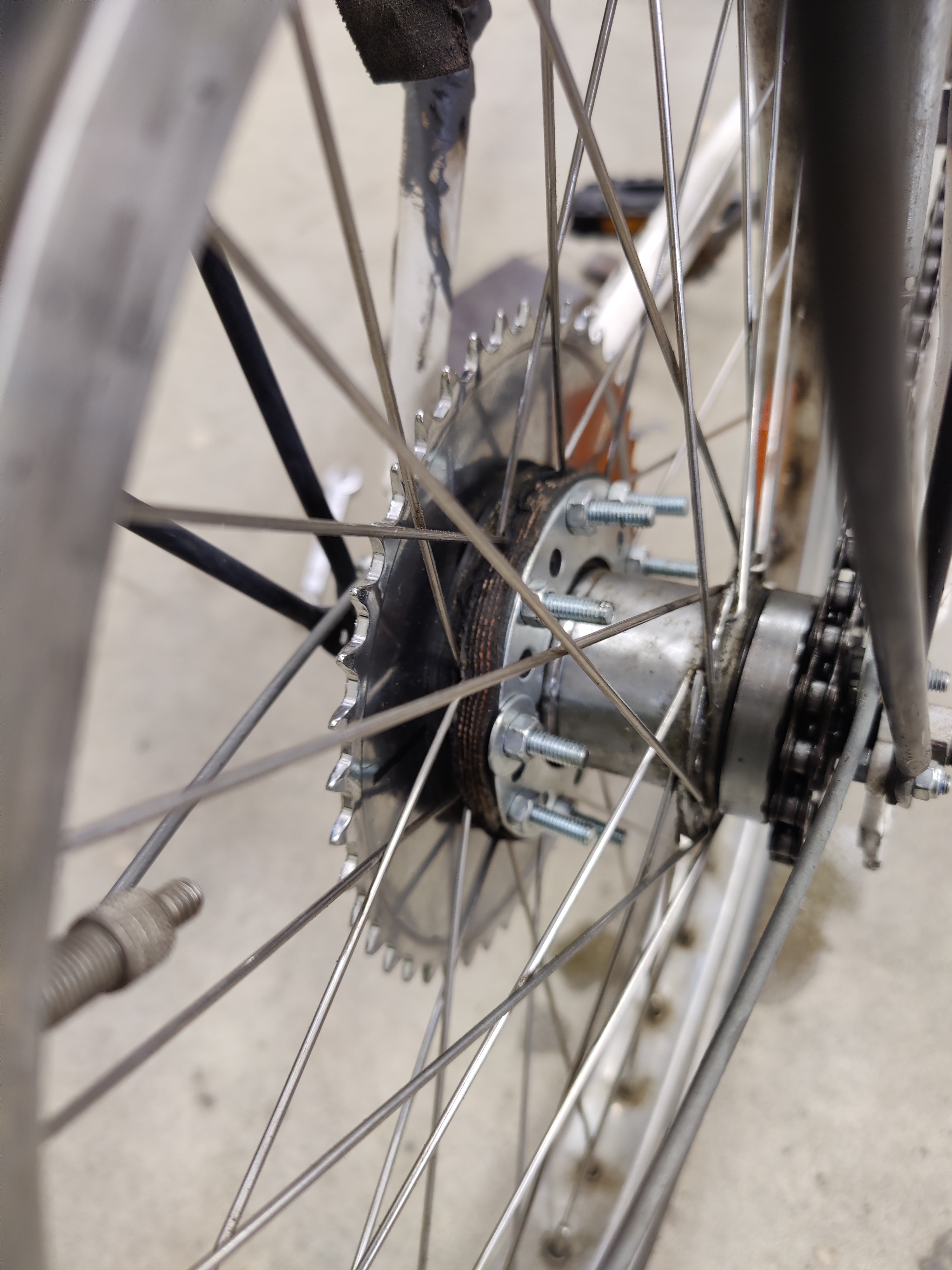 Takahammaratasta ei ole tarkoitettu 3 vaihteiseen napaan. Ensin keskireikää isommaksi ja sitten uus pulttijako hieman kauemmaksi. Alkuperäisistä pultinreijistä näkyi pinnalaippa peittäen puoli pultinreikää. Aika säätämistä on, mutta ei haittaa.