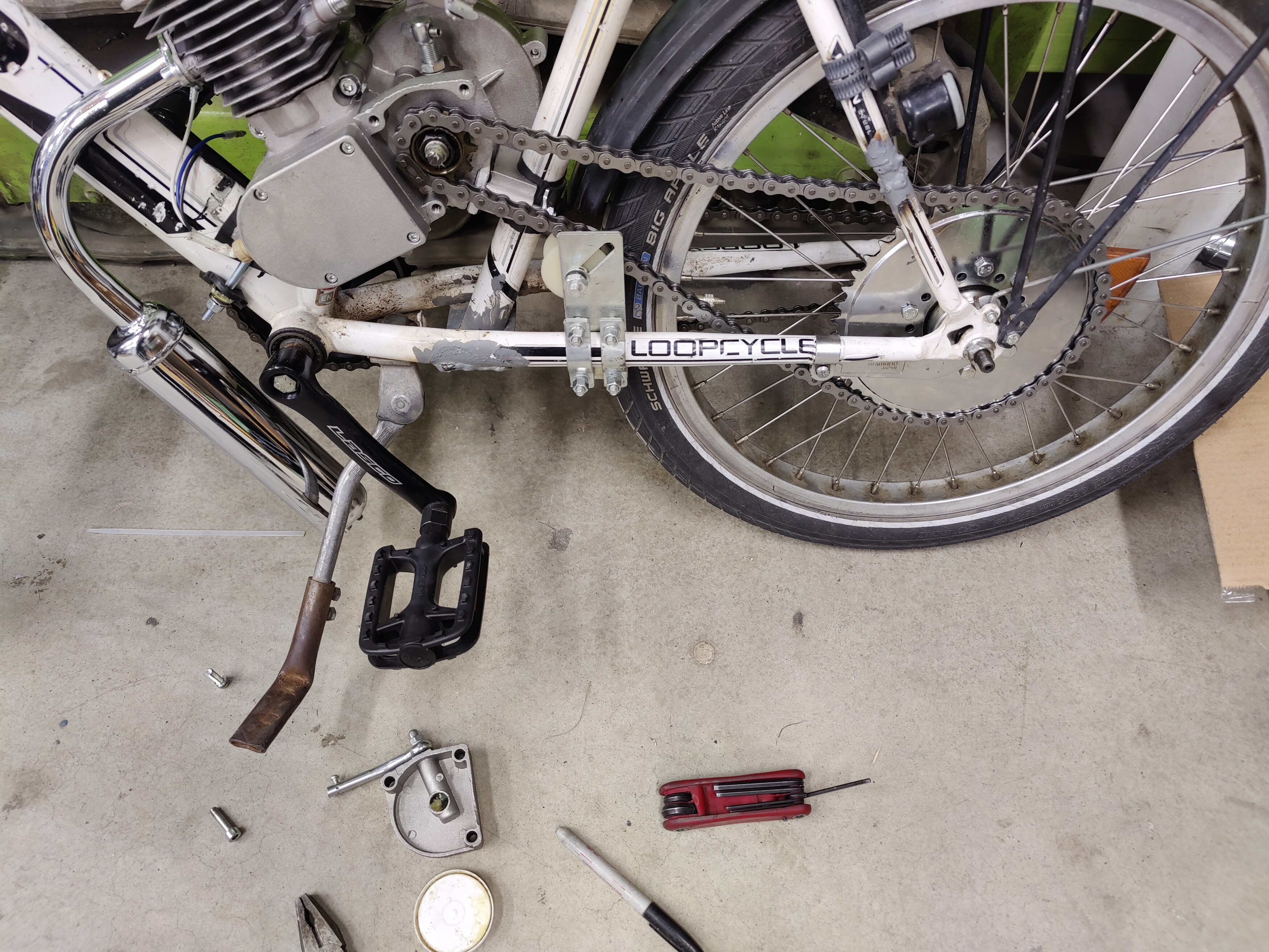 Tuohan alkaa olla kohta ajokunnossa . Bensatankki enää paikalleen, ja vaijerit+kahvat.