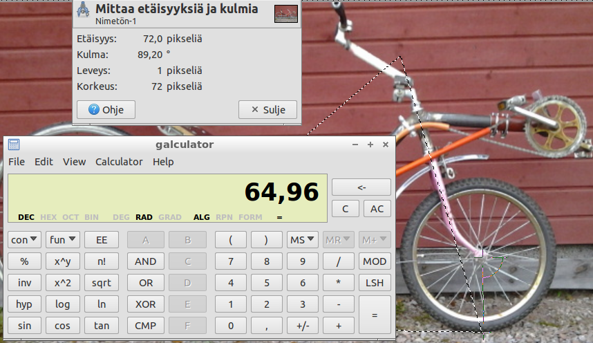 jori kirjoitti:Katselin taas pyöräsi sivukuvaa. Etuhaarukka on tuolle ohjausakselin kulmalle ehkä vähän liian käyrä, eli offsetti (rake) liian suuri. Jättö jää kovin pieneksi. Laita vähän suorempi haarukka, niin saat jaloille enemmän tilaa ja vakaamman ajotuntuman. Älä kuitenkaan liioittele, jottei tule paikoillaan ja hitaassa nopeudessa haukkaava ohjaus.