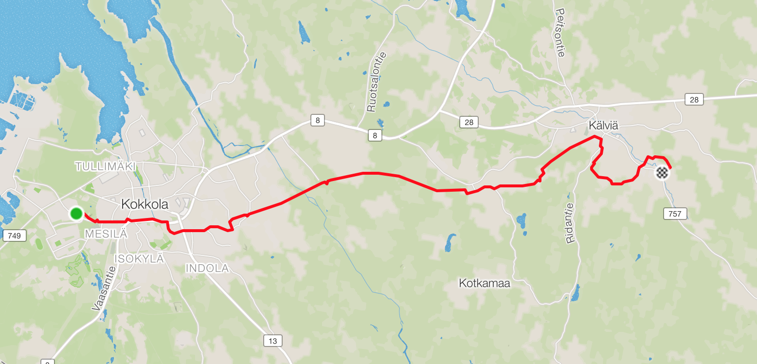Tämän päivän työmatkakilometrit kertyi taas Off-road haasteesta. Tällä kertaa oli vähän lyhyempi reitti, vain 26 km, mutta siitä asfalttia oli vain n. 6 km. Eli nyt onnistuin haasteessa 77 prosenttisesti