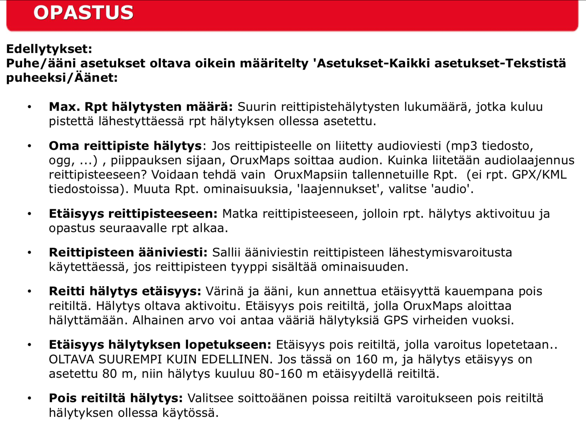Siitä saa päälle ominaisuuden, jossa värinä ja ääni tönii takaisin reitille.