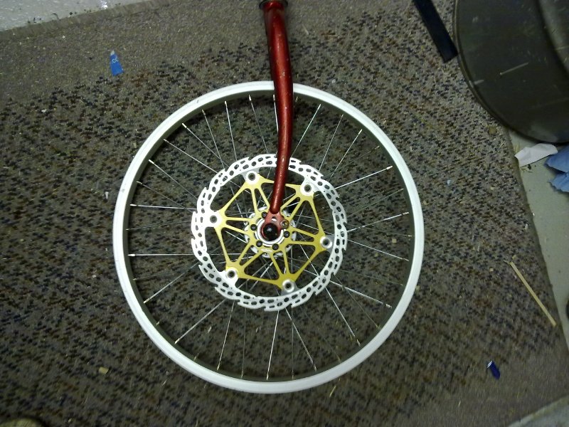Toistaiseksi projekti on edennyt vain senverran että etuvanteen olen pinnannut, elinluovuttajapyöristä irroitellut kampikeskiön putken ja emäputken, ja muutamia suunnitelmia tuherrellut. Muutaman kuvankin tuossa kerkesin jo räpsäytellä. Minkään valtakunnan painoarviota en ala tekemään, punnitsen sitten vasta valmiiin pyörän.