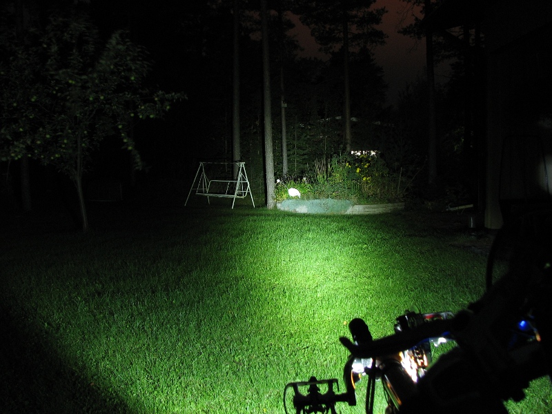Suuntaus jutska... TrustFire on suunnattu tuohon lintuun ja MagicShine suurinpiirtein siten ettei vastaantulija kovin pahasti sokaistu ;) TrustFiren valokeila on pyöräilyyn turhan kapea, oikeastaan ainoa hyvä asennuspaikka sille olisi kypärän päällä...
