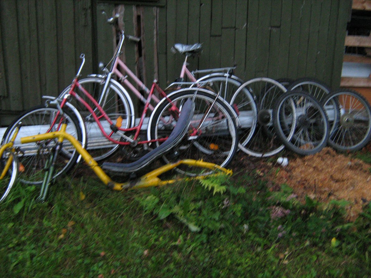 Jos joku tuntee pakottavaa tarvetta haalia ilmaiseksi vanhoja maastopyörien kiekkoja tai kuvan mukaisia pyörien runkoja.. niin tervetuloa hakemaan täältä Kärkölästä!